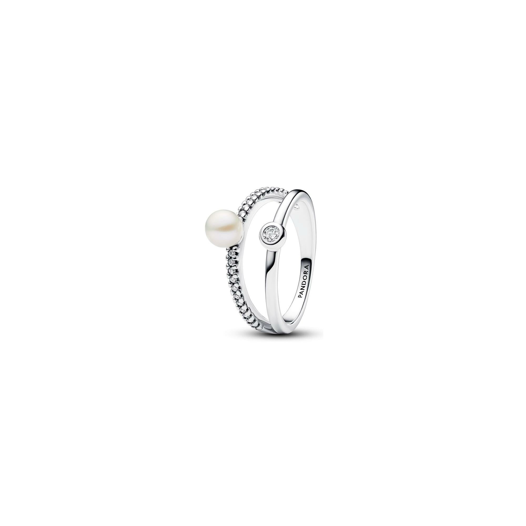 Bague Pandora Double en argent, perle d'eau douce et oxyde de zirconium, taille 52