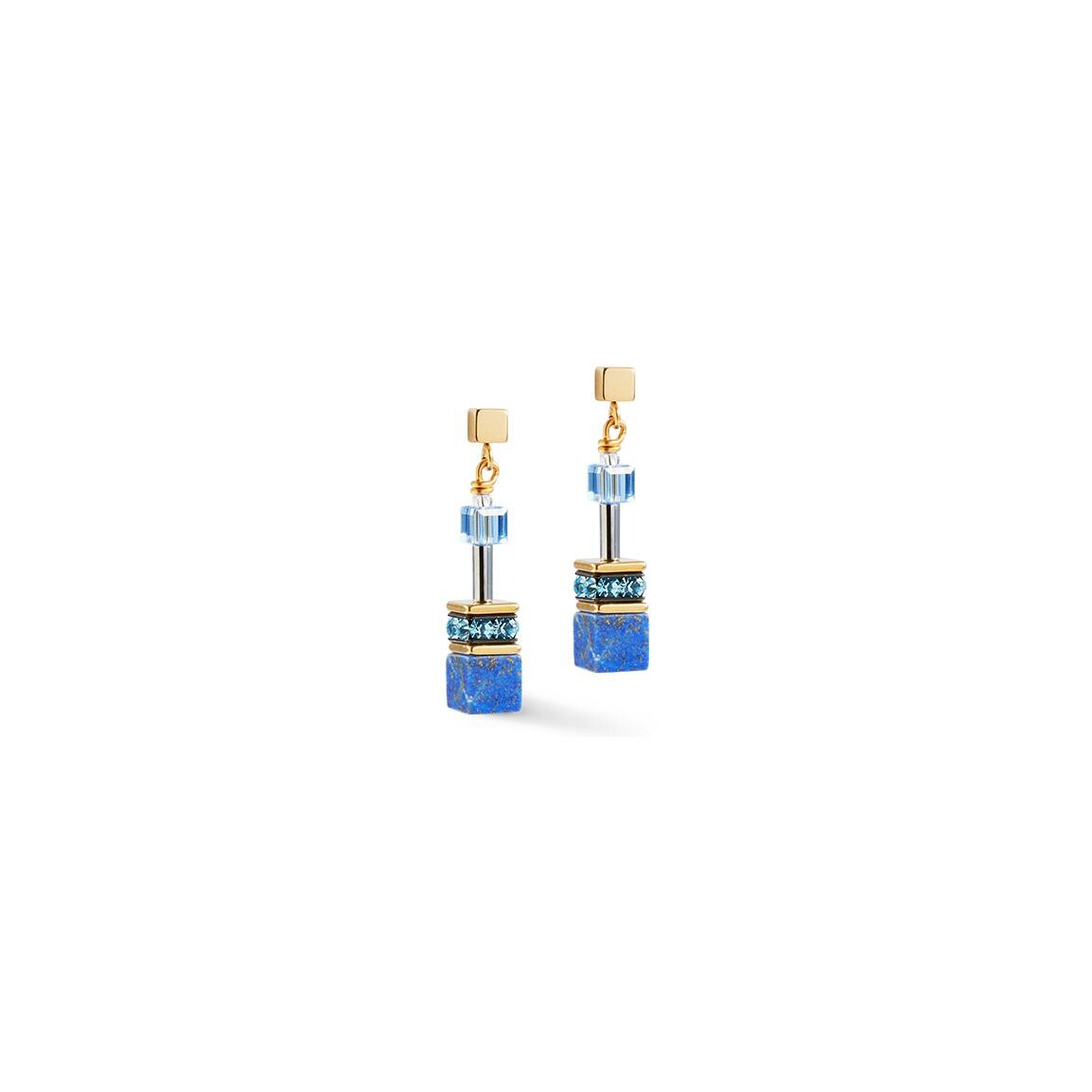 Boucles d'oreilles Cœur de Lion GeoCUBE en métal doré, lapis lazuli, cristaux Swarovski et rondelle de strass