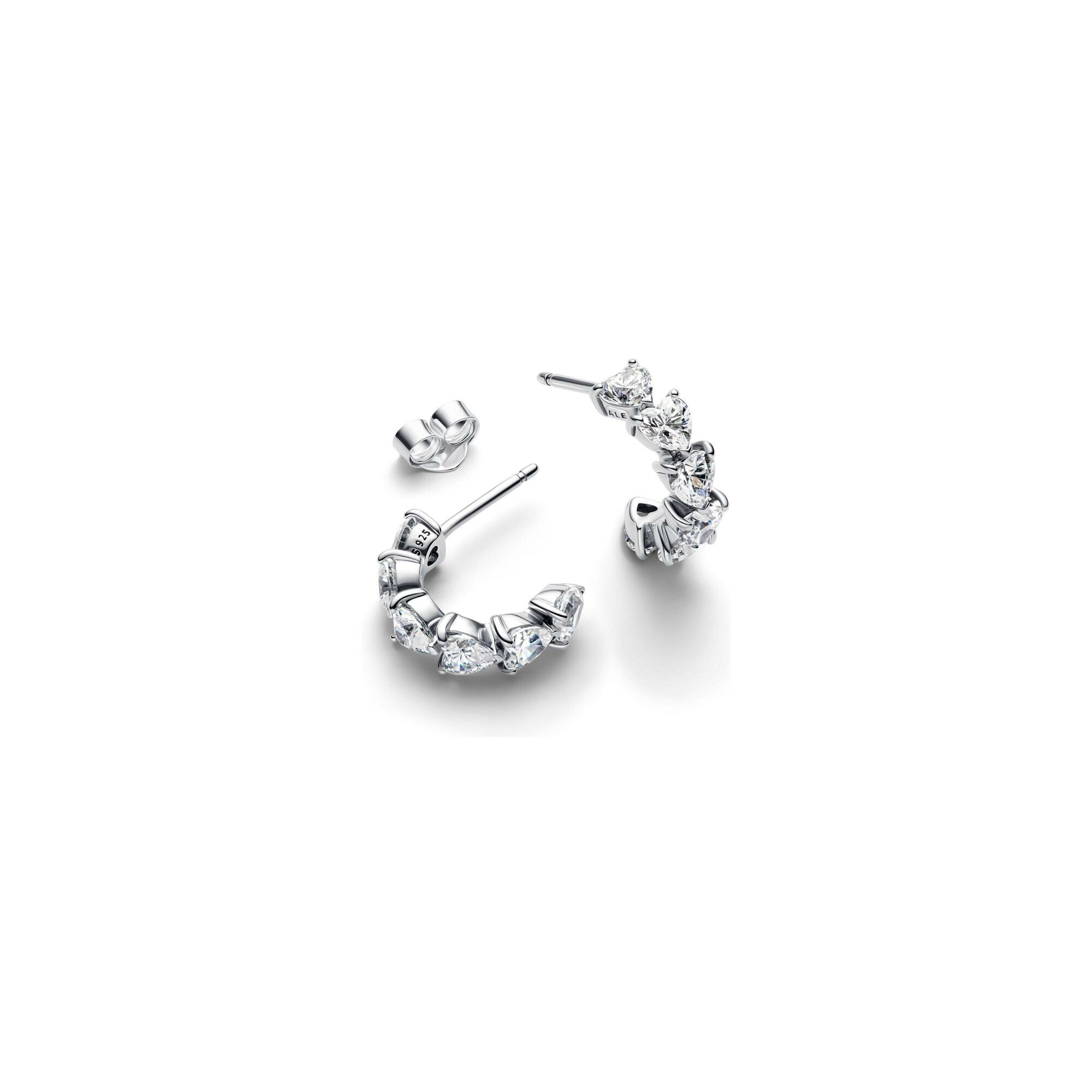 Boucles d'oreilles Pandora Timeless créoles ouvertes cœurs scintillantes en argent