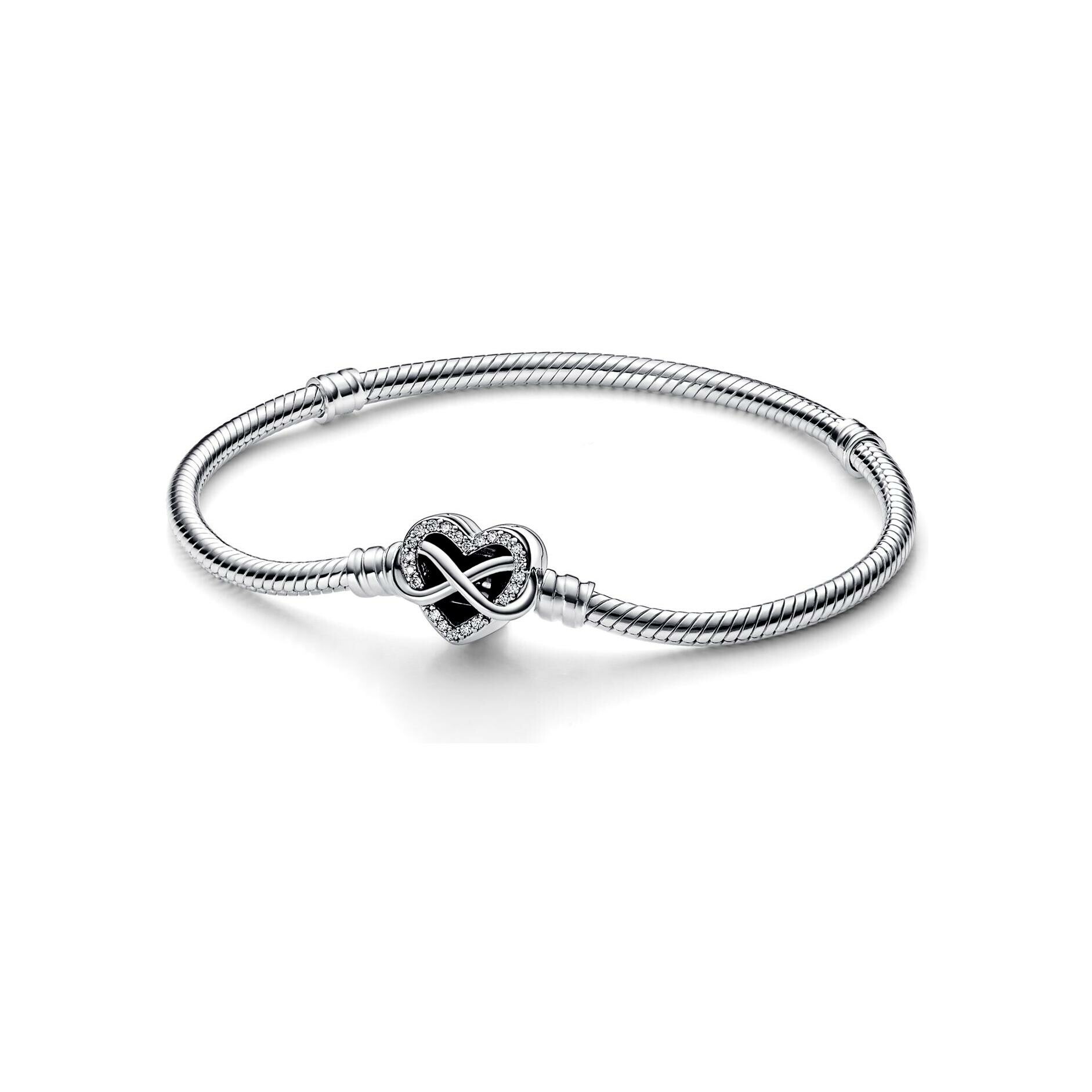 Bracelet Pandora Moments maille serpent fermoir cœur infini scintillant en argent