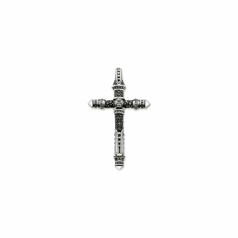 Pendentif Thomas Sabo Rebel at heart Croix en argent, obsidienne et oxyde de zirconium noir
